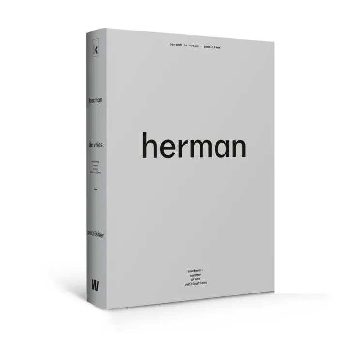 Als uitgever is de vries minder bekend. Vanaf 1974 – 50 jaar geleden – publiceert hij echter al kunstenaarsuitgaven bij zijn eschenau summer press & temporary travelling press publications. Vanaf het begin nodigt hij ook anderen uit om te publiceren, onder wie James Lee Byars, Marinus Boezem en meer recent Melanie Bonajo. Deze samenwerking met verscheidene kunstenaars leverde opvallende experimenten op in vorm en inhoud. Inmiddels verschenen meer dan 75 delen, die allen volledig worden getoond en toegelicht in herman de vries – publisher, met teksten geschreven door RKD-conservatoren Lynne van Rhijn en Ton Geerts.